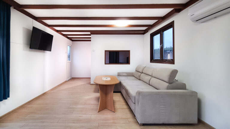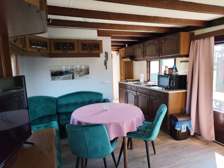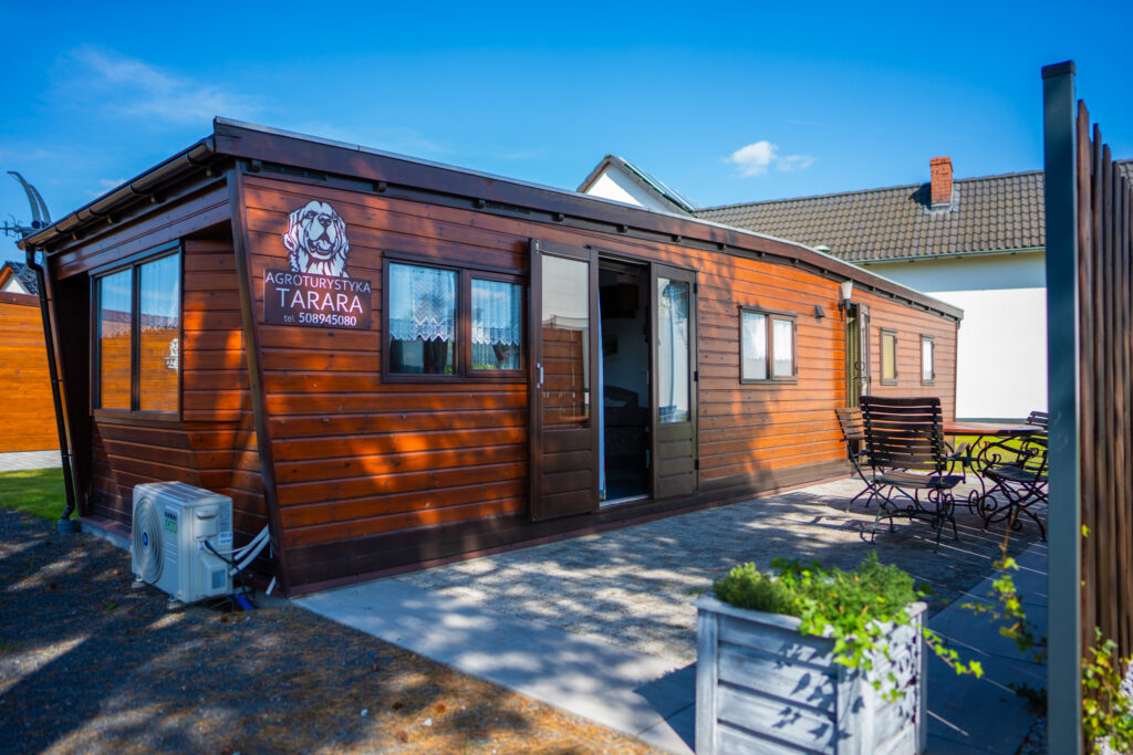Domek 3-5 osobowy wyposażony jest w bezpłatny dostęp do sieci Wi-Fi, TV z dostępem do telewizji naziemnej, klimatyzację, taras z meblami ogrodowymi, grill.