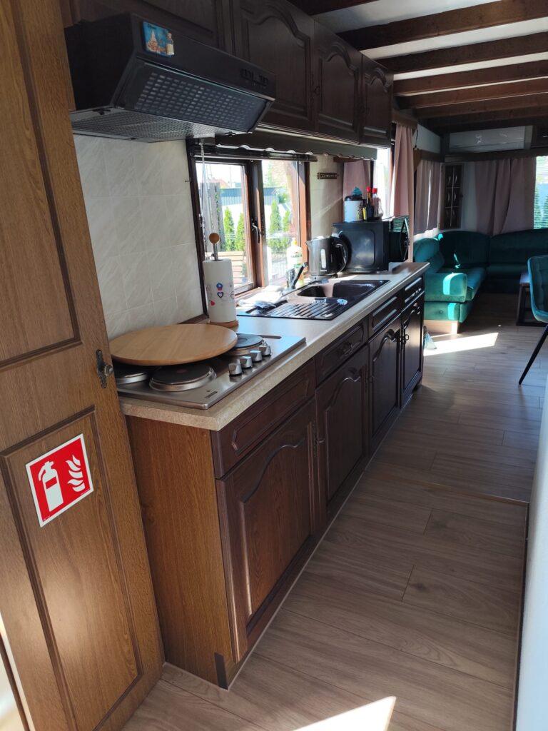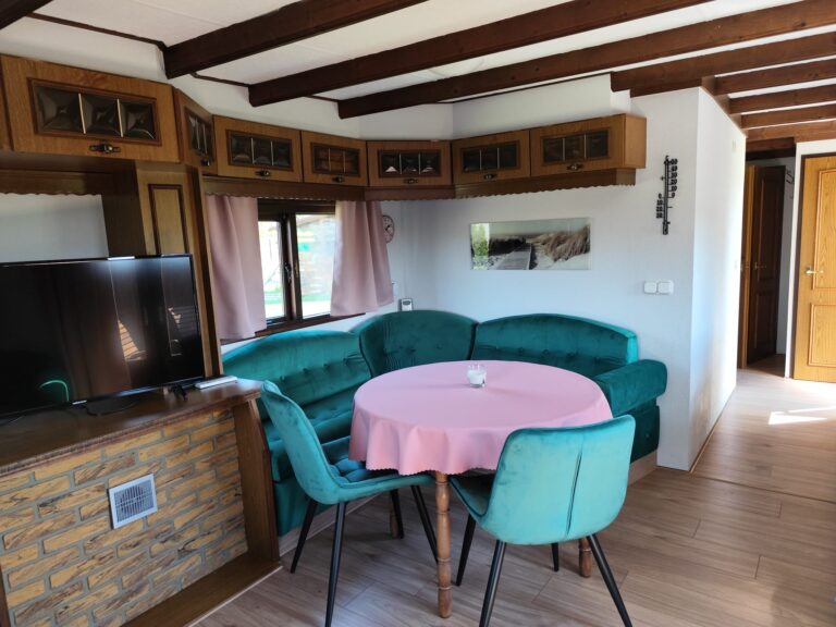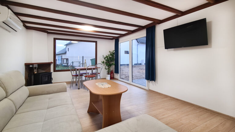 Domek 4 osobowy wyposażony jest w bezpłatny dostęp do sieci Wi-Fi, TV z dostępem do telewizji naziemnej, klimatyzację, taras z meblami ogrodowymi, grill.
