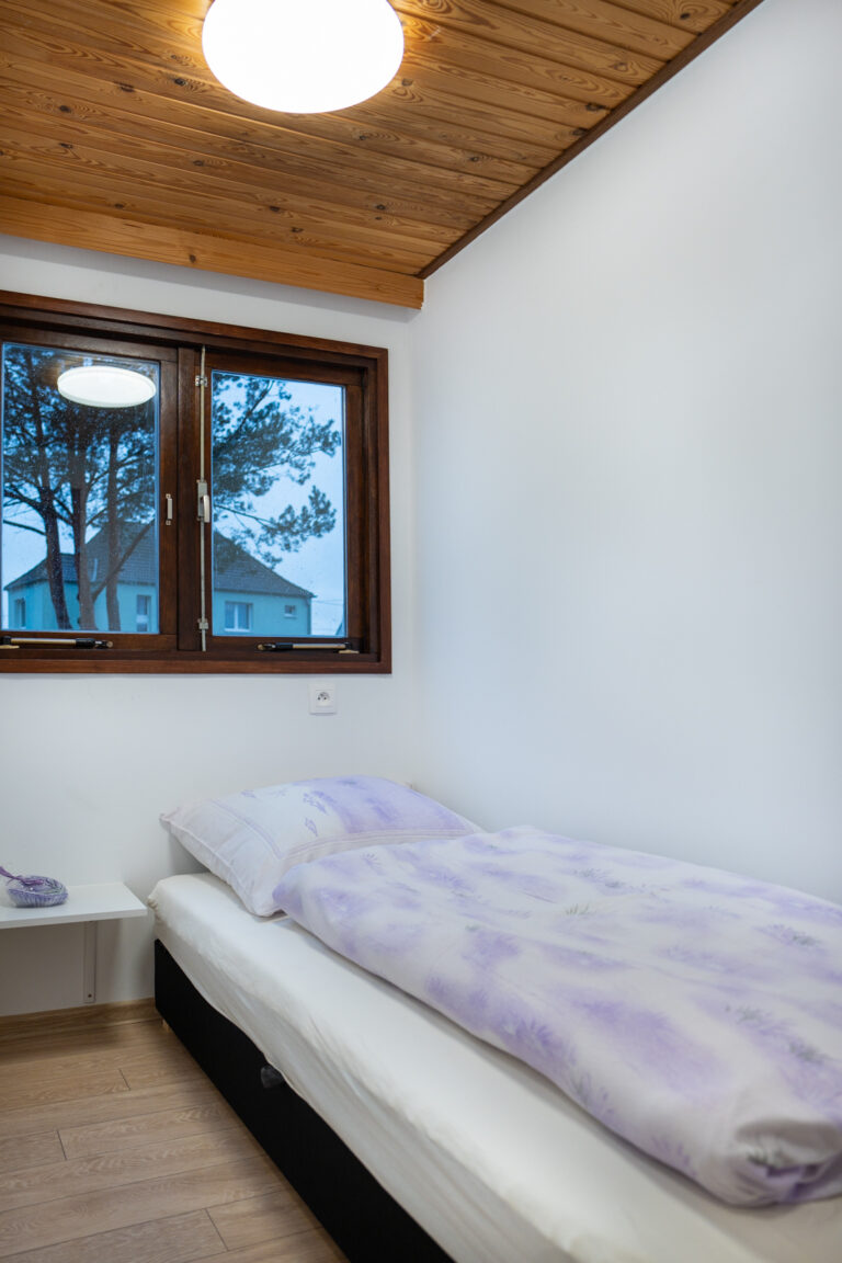 Oferowany domek składa się z 5 pomieszczeń: 2 pokoje sypialne, salon, kuchnia oraz łazienka.