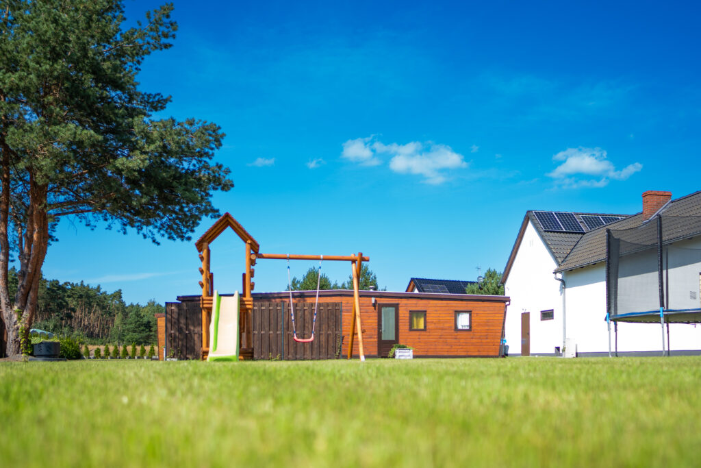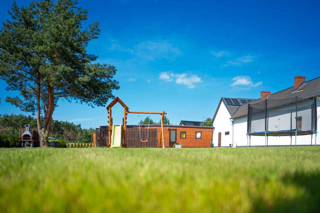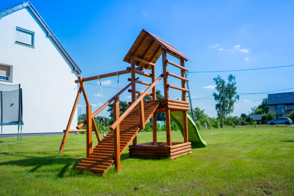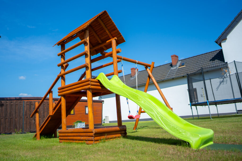 Przed domkami znajduje się plac zabaw dla najmłodszych wczasowiczów. Plac zabaw został skonstruowany w taki sposób, aby był bezpieczny dla przebywających na nim osób.
